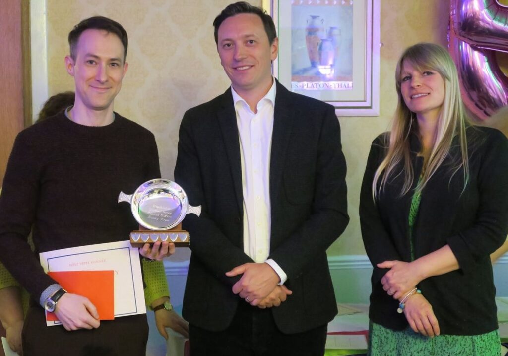 We were delighted to welcome our special guests, Gerry and Gill O’Hare. Gerry is the youngest son of our beloved Theresa O’Hare who passed away in November. He cut the cake and presented the Theresa O’ Hare Poetry Prize, a silver quaich plus £100 donated by the family, to Matthew Keeley.